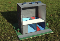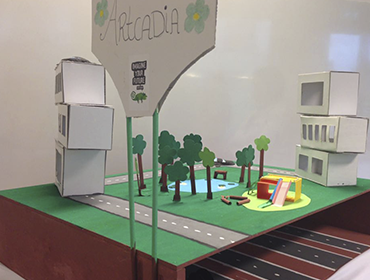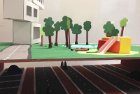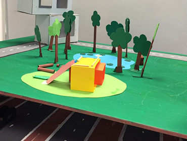 We hebben besloten om een wijk te ontwerpen en dit ook te maken in het klein. Het probleem dat we hebben aangepakt, is dat buren uit een wijk vaak geen goede relatie meer hebben. We hebben het opgelost door de wij meer open te maken en een ontmoetingsplek in het midden te plaatsen, die voor iedereen toegankelijk is. We zijn begonnen met het ontwerp van een huis, daarna zijn we gaan brainstormen over wat er allemaal in de wijk zou komen. We hebben gedacht aan vliegende auto’s, een speelplek, een ontmoetingsplek, een snelweg onder de grond en een vijver. Doordat de snelweg onder de grond ligt, is het boven veilig en rustig. Vliegende auto’s zijn er voor langere afstanden.