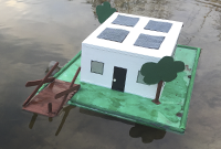Wij hebben voor dit onderwerp gekozen, omdat we geïnteresseerd waren, waar en hoe huizen worden gebouwd als de zeespiegel stijgt. Wij dachten dat wanneer de zeespiegel zou stijgen je geen huis meer kan bouwen op het land, omdat het land dan onderwater staat. Ons idee was daarom ook om een maquette van een huis op het water te bouwen. Omdat wij wat meer wouden weten over huizen op het water hebben wij Harriëtte Frizo geïnterviewd. Zij werkt voor een architecten bureau in Meerstad. Zij heeft ons antwoord gegeven op onze vragen en die informatie hebben wij gebruikt voor onze presentatie. Ons werkstuk is een huis die op het water kan drijven. Dat hebben we écht gemaakt maar dan wel op schaal. We hebben het huis in het water gezet toen het af was, het bleef ook echt drijven! Wij wilden het huis ook duurzaam maken en daarom hebben we op het huis zonnepanelen geplaatst die zoveel mogelijk elektriciteit opwekken, allemaal stroomdraden die door het water lopen is natuurlijk geen oplossing. Er is ook een regenpijp die het water naar een boiler in het huis leidt, daar wordt het gefilterd. Dat water kun je uiteindelijk gebruiken om mee te douchen of je kunt het uiteindelijk drinken. Ook is er een stijger waar je je boot kan aanleggen als je daar woont. Aan de woonplatformen zitten klemmen, de huizen kunnen dan aan elkaar geklemt worden waardoor de mensen meer sociale contacten krijgen. Zo ontstaat er een dorp op het water.
